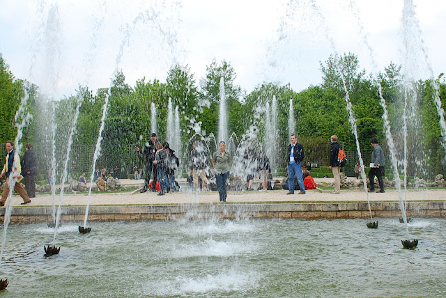 From Marie Antoinette's special estate, we traveled back to the main grounds of Versailles to catch the fountain display before we headed back to Paris. Nearly every fountain spurted to life at 3:30 pm and would continue to flow for 1.5 hours. We figured the easiest way to navigate through the gardens was to start at one end and work back towards the Chateau and the exit.